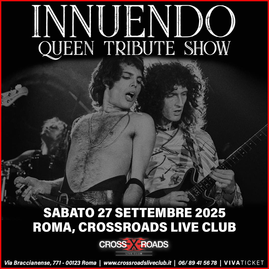 Sabato 27 Settembre al CrossRoads Live Club il grande ritorno degli Innuendo. Come sempre sono pronti a regalare al loro fedele pubblico un’altra emozionante performance… da One Vision a Bohemian Rhapsody, da Love of my Life a Fat Bottom Girls, la band romana confezionerà come di consueto una scaletta palpitante e piena di sorprese.