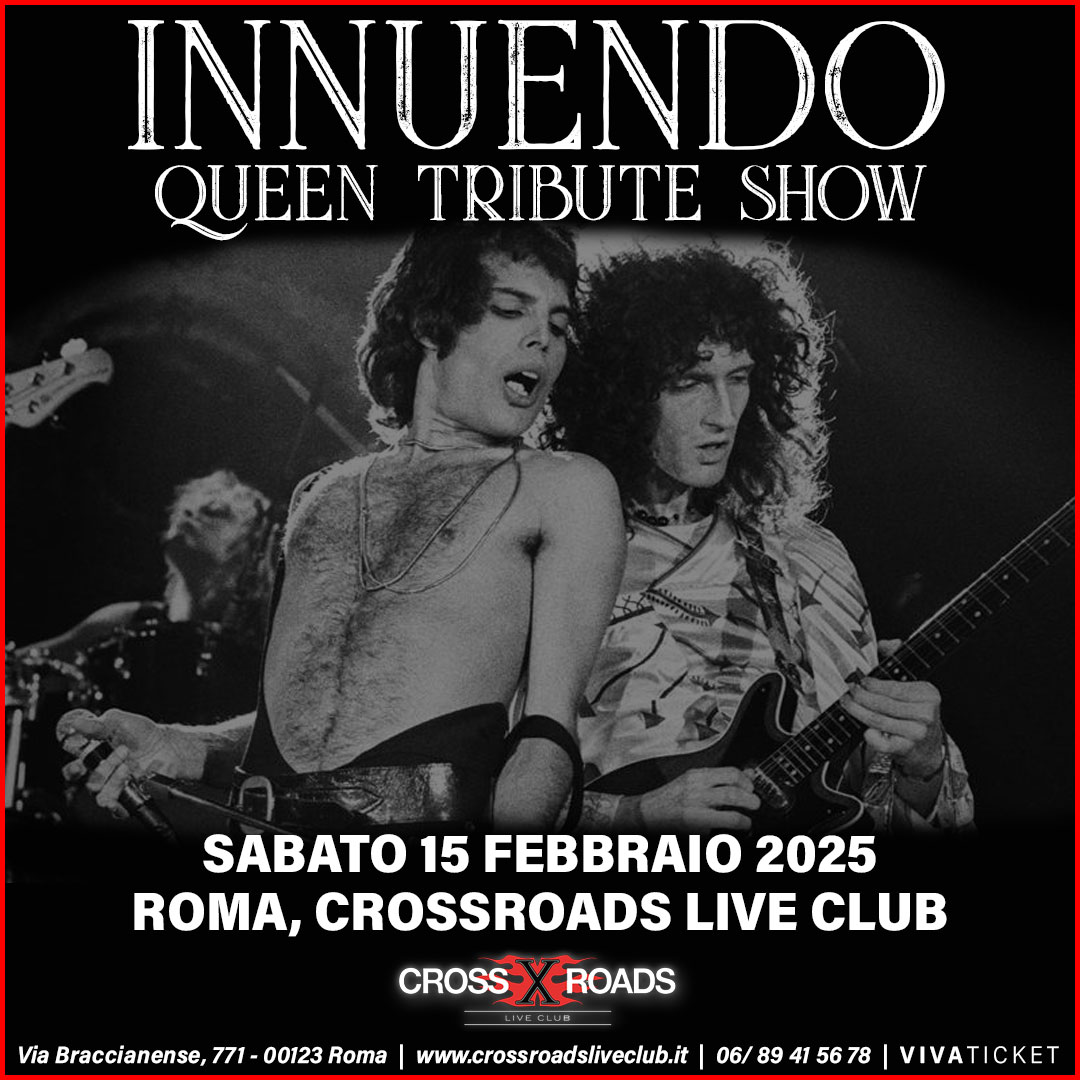 Sabato 15 febbraio al CrossRoads Live Club il grande ritorno degli Innuendo. Come sempre sono pronti a regalare al loro fedele pubblico un’altra emozionante performance… da One Vision a Bohemian Rhapsody, da Love of my Life a Fat Bottom Girls, la band romana confezionerà come di consueto una scaletta palpitante e piena di sorprese.