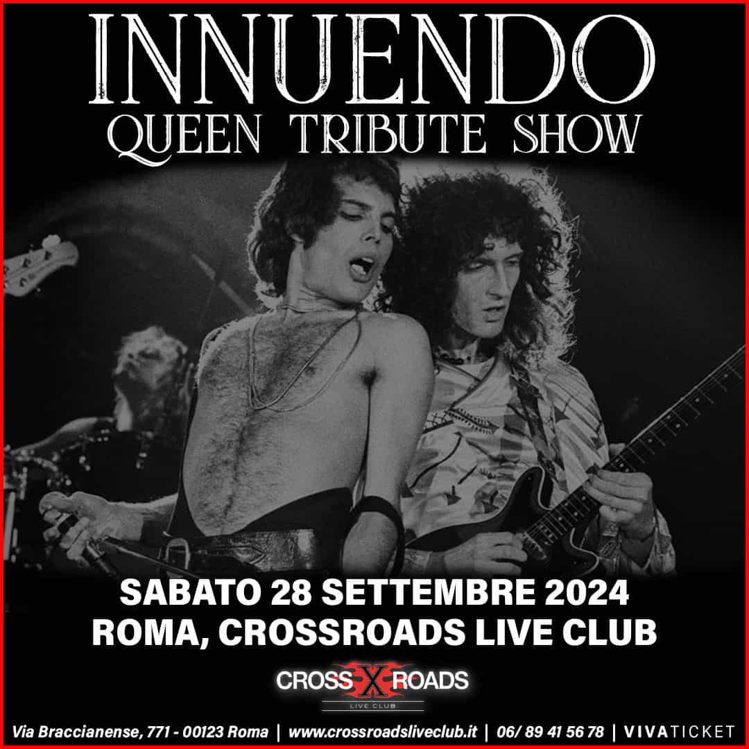 Sabato 28 Settembre al CrossRoads Live Club il grande ritorno degli Innuendo. Come sempre sono pronti a regalare al loro fedele pubblico un’altra emozionante performance… da One Vision a Bohemian Rhapsody, da Love of my Life a Fat Bottom Girls, la band romana confezionerà come di consueto una scaletta palpitante e piena di sorprese.