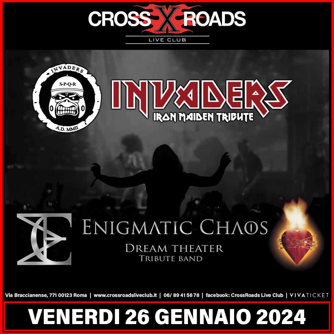 Venerdi 14 aprile presso il Crossroads Live Club, Enigmatic Chaos (Dream Theater tribute) ed Invaders (Iron Maiden tribute) proporranno due set mirati a ripercorrere la carriera dei due gruppi dagli esordi ai giorni nostri attraverso diverse sorprese musicali e grandi brani classici.