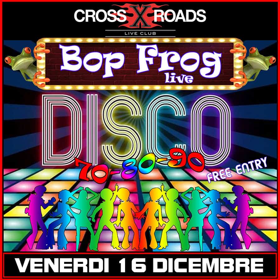 L’anniversario dei 30 anni dei Bop Frog li celebriamo con una grande festa al CrossRoads Live Club, il meglio della Disco Dance anni ’70 ’80 e ’90 che ha fatto la storia della musica internazionale, una scaletta ricca e coinvolgente con le migliori hits di quegli anni che hanno appassionato e fatto ballare un’intera generazione. Ingresso gratuito per chi viene a cena, si comincia alle ore 20:00 con l’apertura delle porte, prenotazione tavoli vivamente consigliata fino ad esaurimento posti.