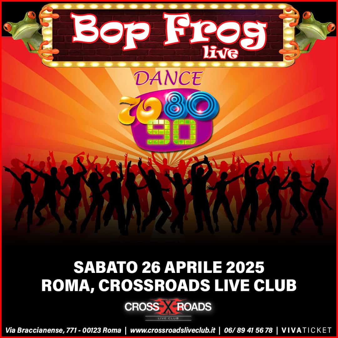 Secondo appuntamento di aprile con la Disco Dance Revival ’70-’80, a farci immergere nelle migliori hits di quegli anni che hanno appassionato e fatto ballare un’intera generazione saranno i nostri cari Bop Frog. Un evento per divertirci tutti insieme in una location perfetta come il CrossRoads Live Club. Ingresso gratuito per chi viene a cena, si comincia alle ore 20:00 con l’apertura delle porte, prenotazione tavoli vivamente consigliata fino ad esaurimento posti.